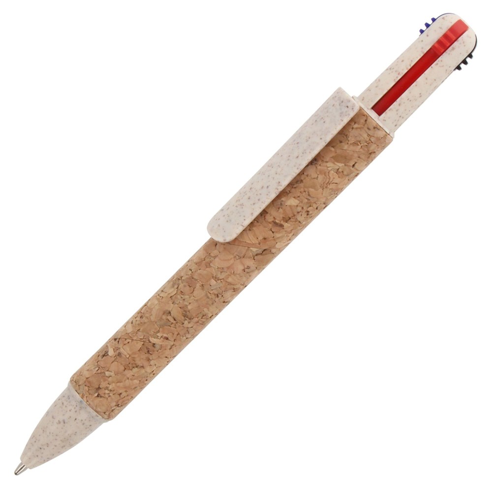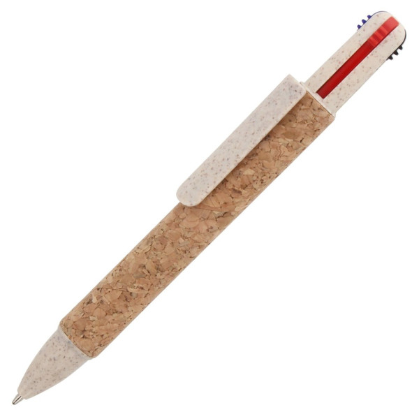 Balpen 4-kleuren kurk